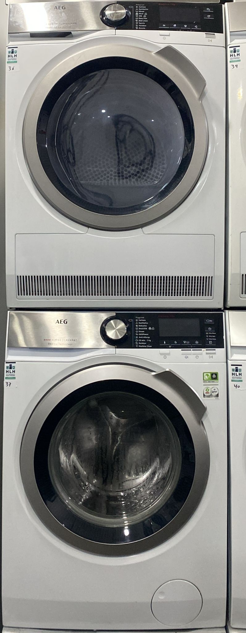 Gør vaskedagen nem og effektiv med dette kvalitetssæt fra AEG, bestående af en vaskemaskine og tørretumbler i moderne design. Begge maskiner er gennemtestede, rengjorte og leveres med 6 måneders funktionsgaranti.
