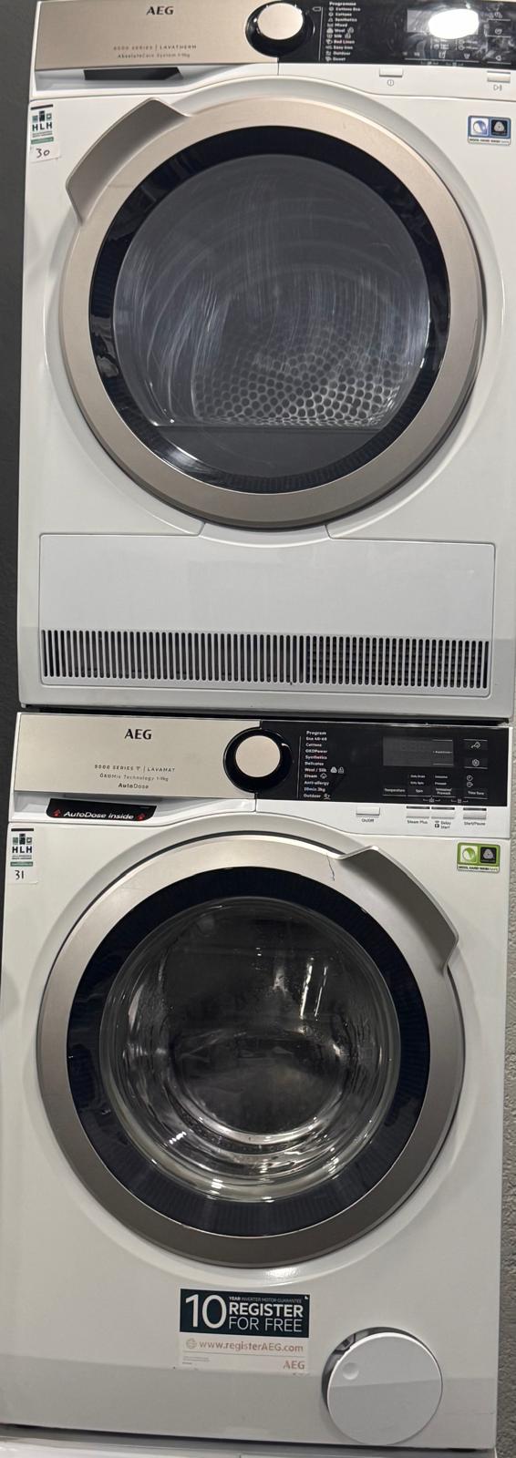 Eksklusivt vaskesæt fra AEG 8000-serien, bestående af en effektiv vaskemaskine og en energieffektiv tørretumbler med varmepumpe.