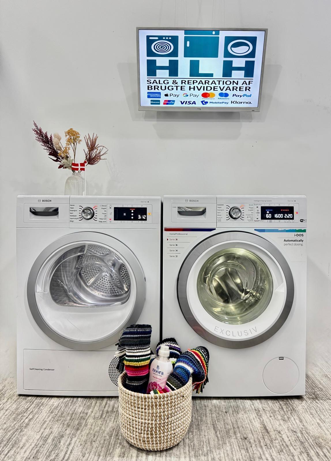 Elegant og energieffektivt sæt fra Bosch Serie 8 med WiFi-funktion og avancerede sensorer, som sikrer perfekt vask og tørring hver gang. Begge maskiner er professionelt testet og fuldt funktionsdygtige.