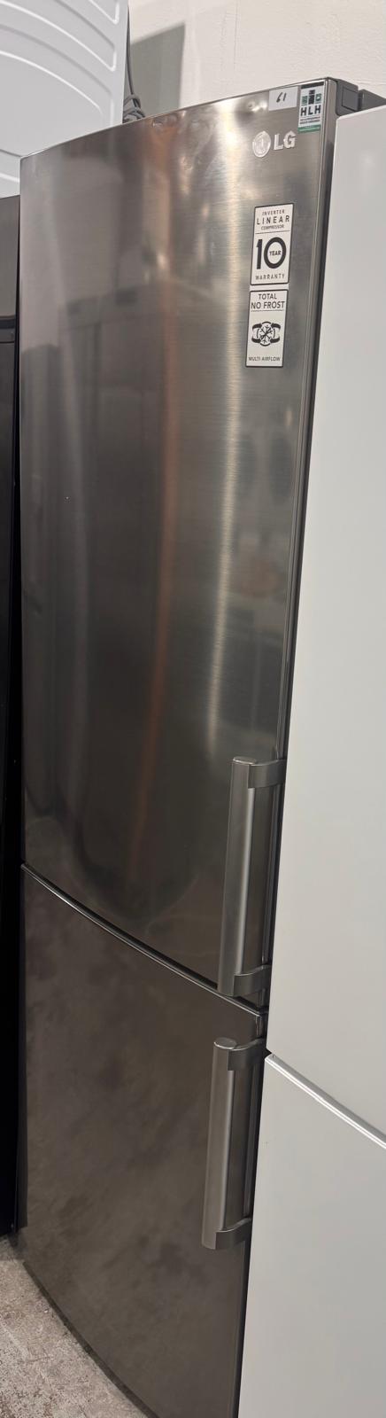 Stilrent og energieffektivt LG-køle/fryseskab i rustfrit stål design.