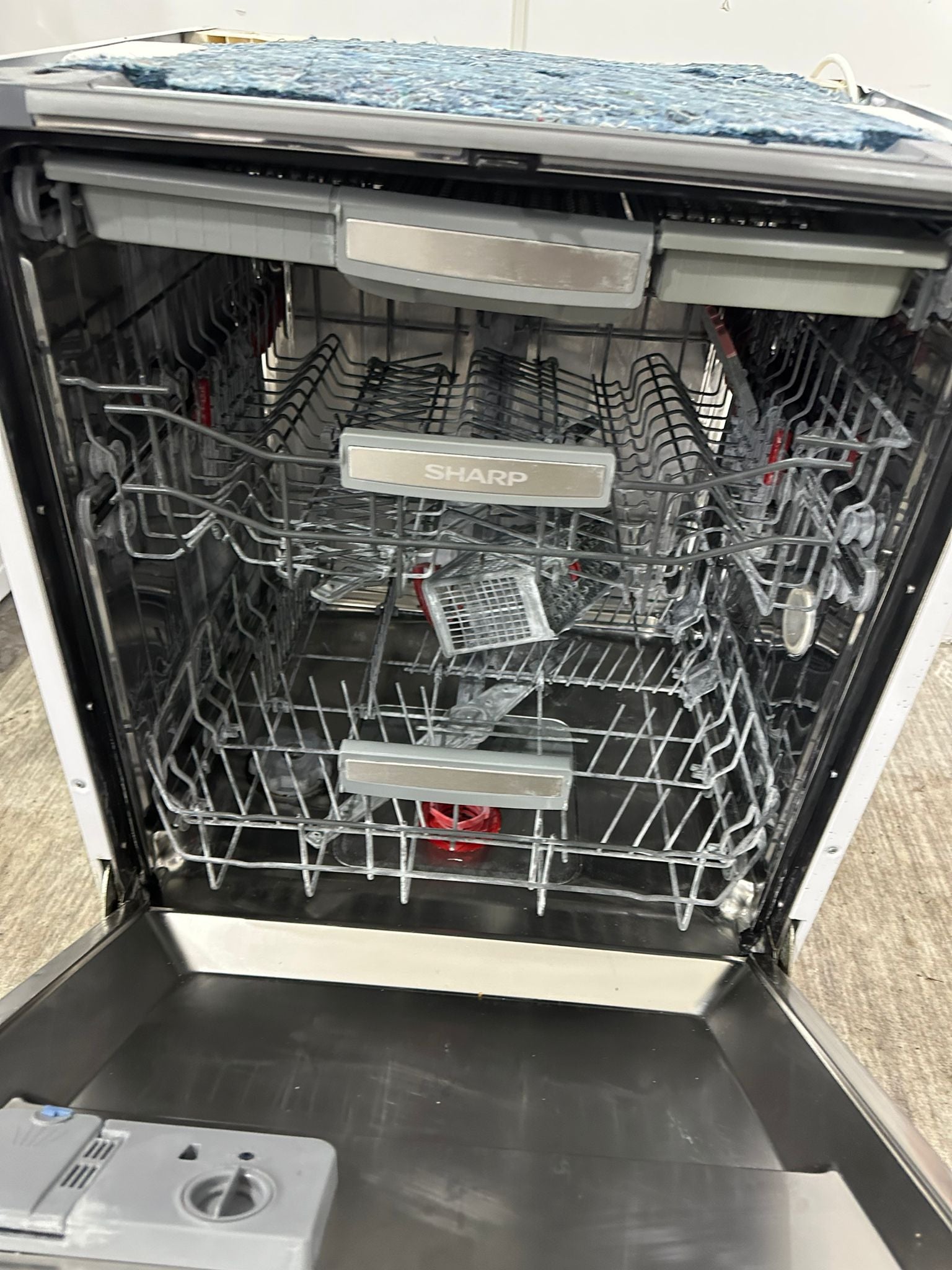 Driftssikker og effektiv Sharp opvaskemaskine med stærk motor, lavt energiforbrug og programmer til både let og hårdt beskidt service.