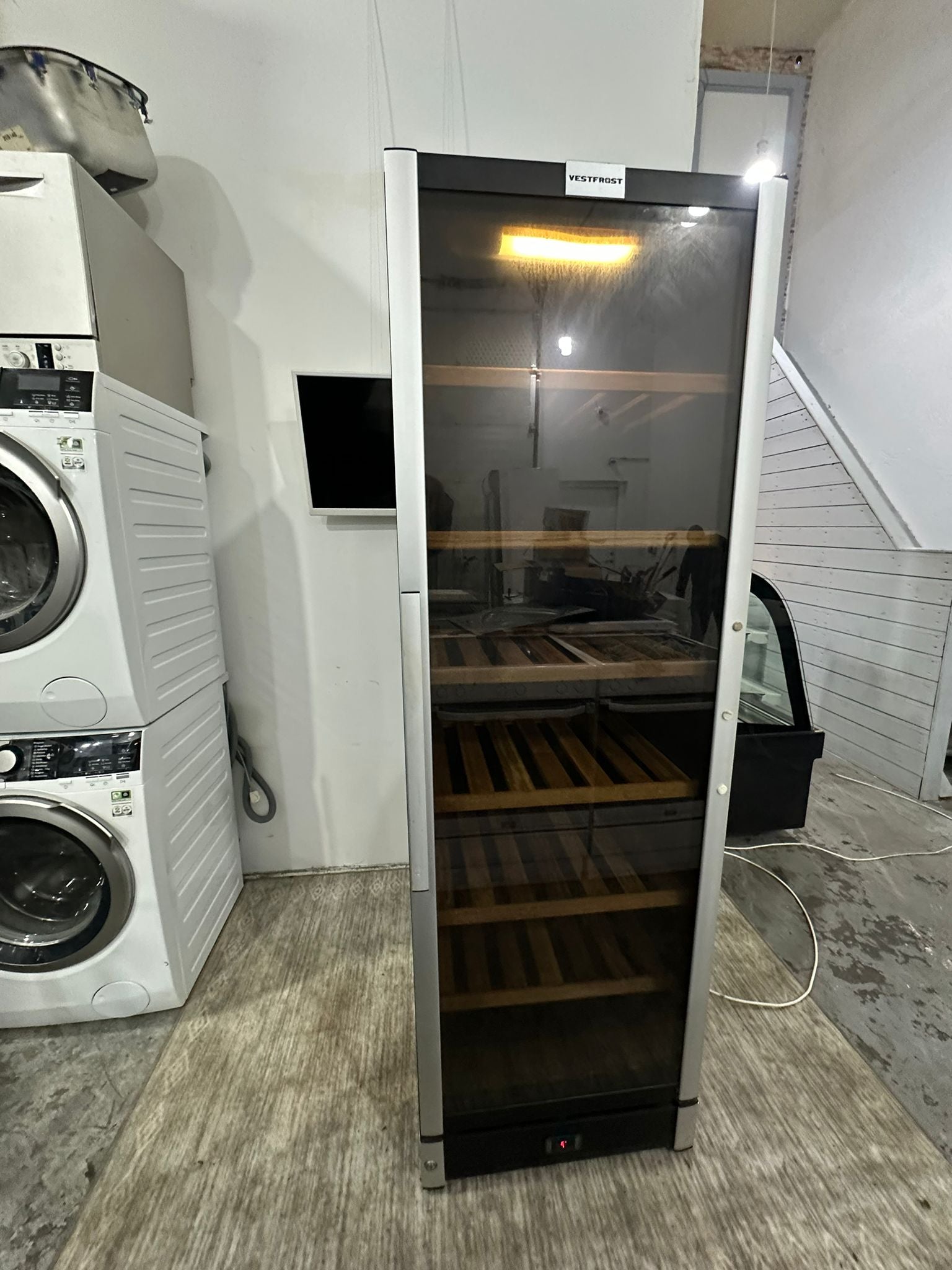 Stort og stilrent Vestfrost vin- og drikkevarekøleskab i sort design.